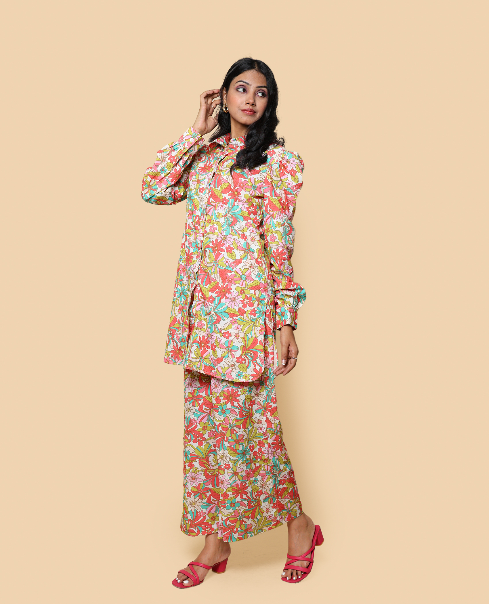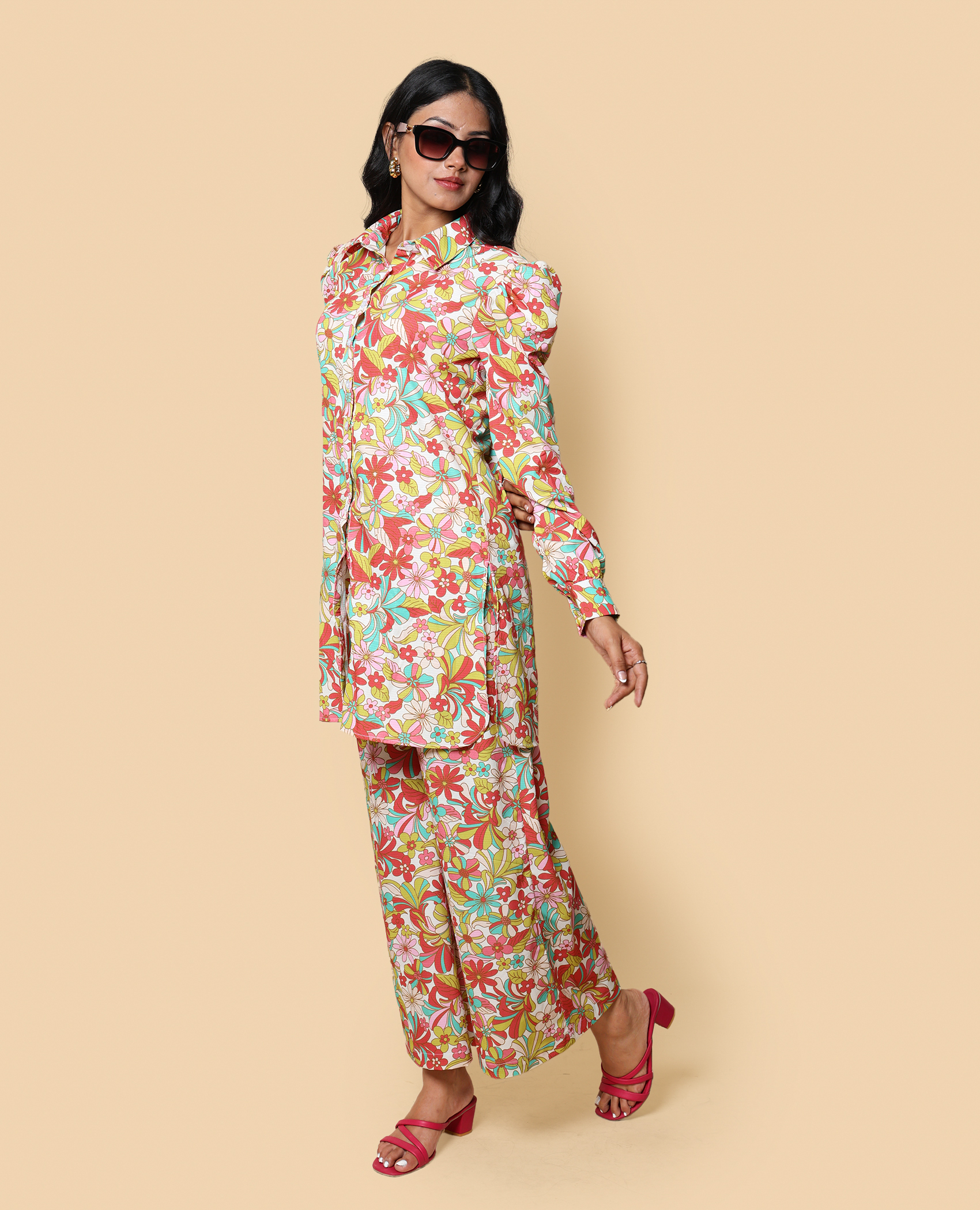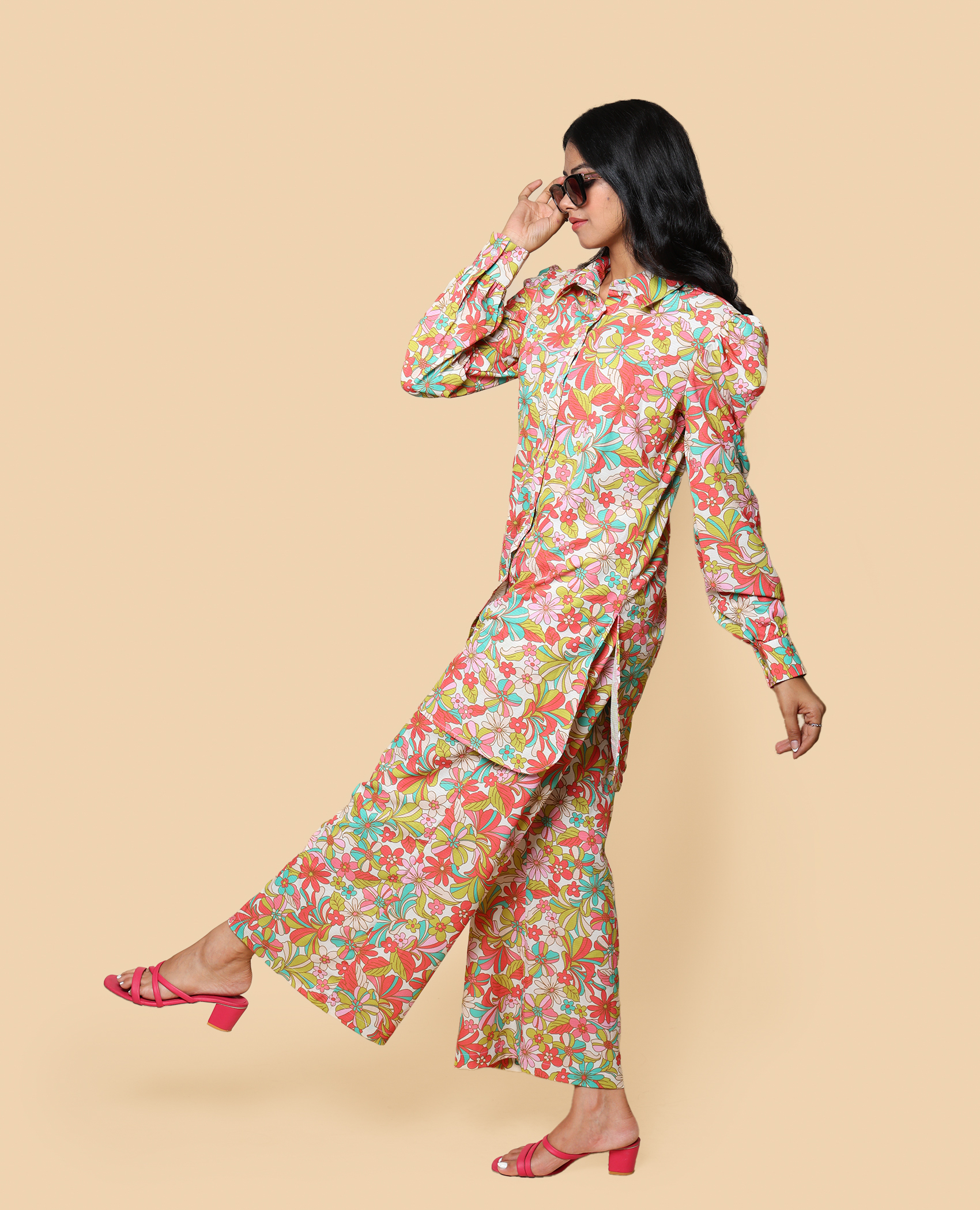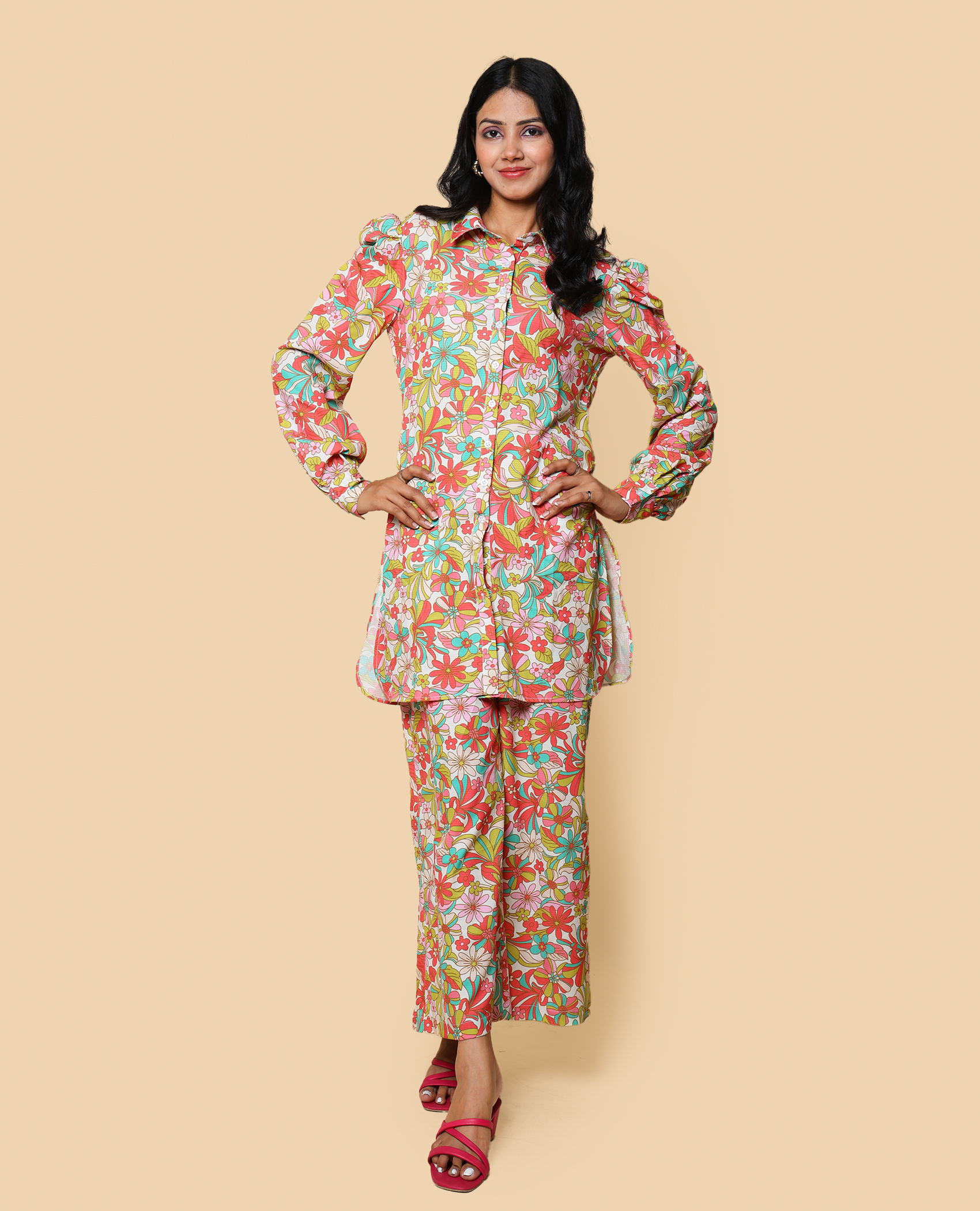 Step out in style with this casual floral co-ord set! Designed 1for comfort and ease, its soft fabric and subtle prints make it perfect for a day out, coffee with friends, or a relaxed weekend. Effortless fashion, all day long.”
