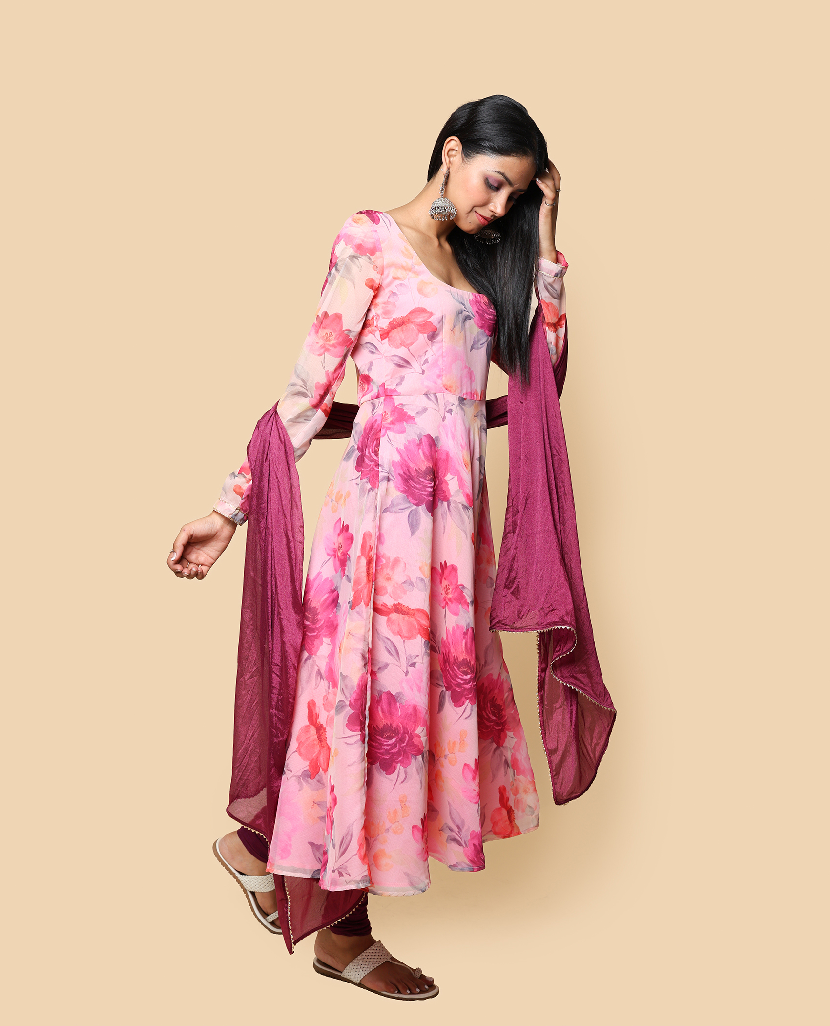 The Chiffon Floral Frock Suit combines flowy elegance with playful floral patterns, making it a must-have for women who love subtle sophistication.