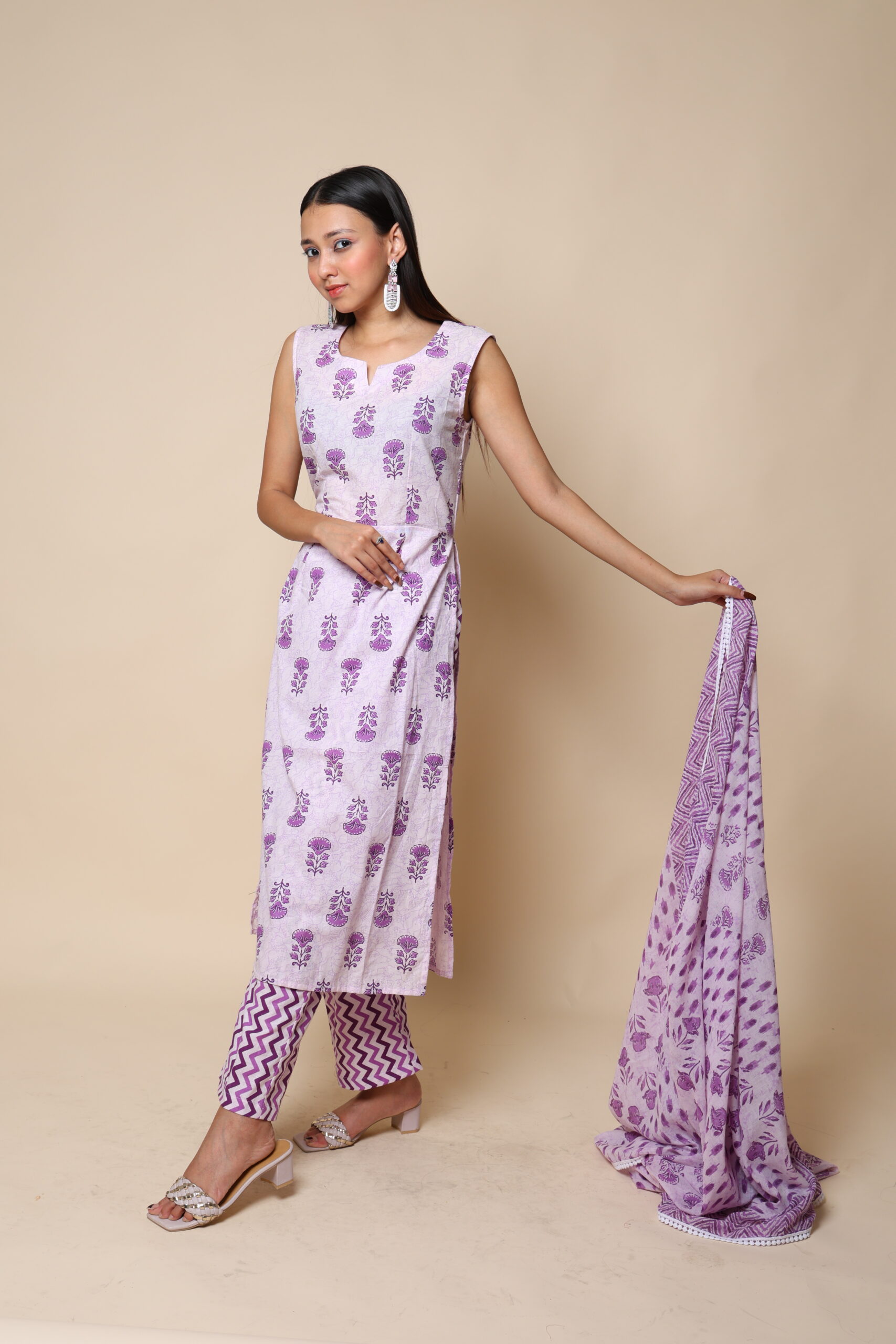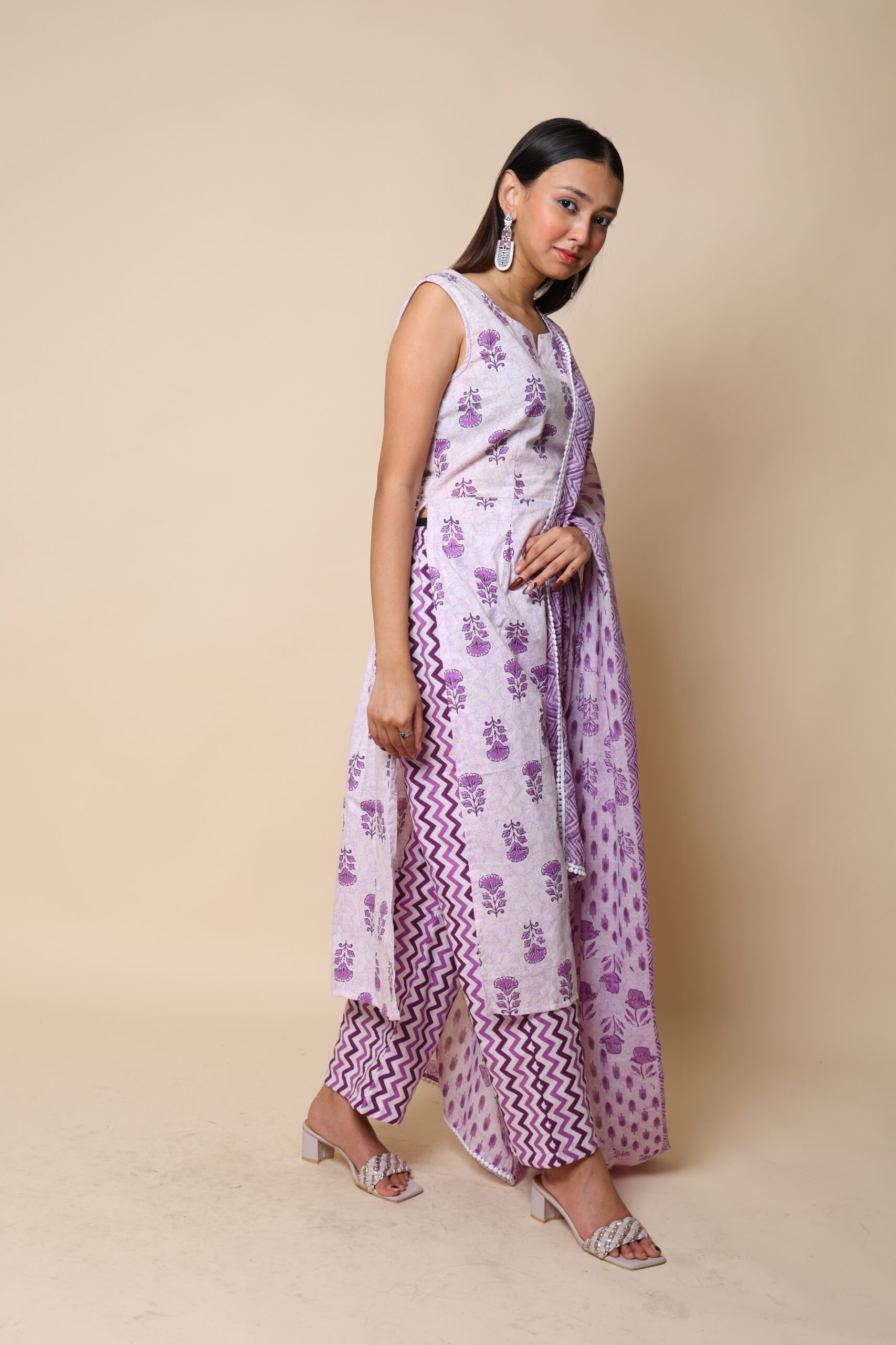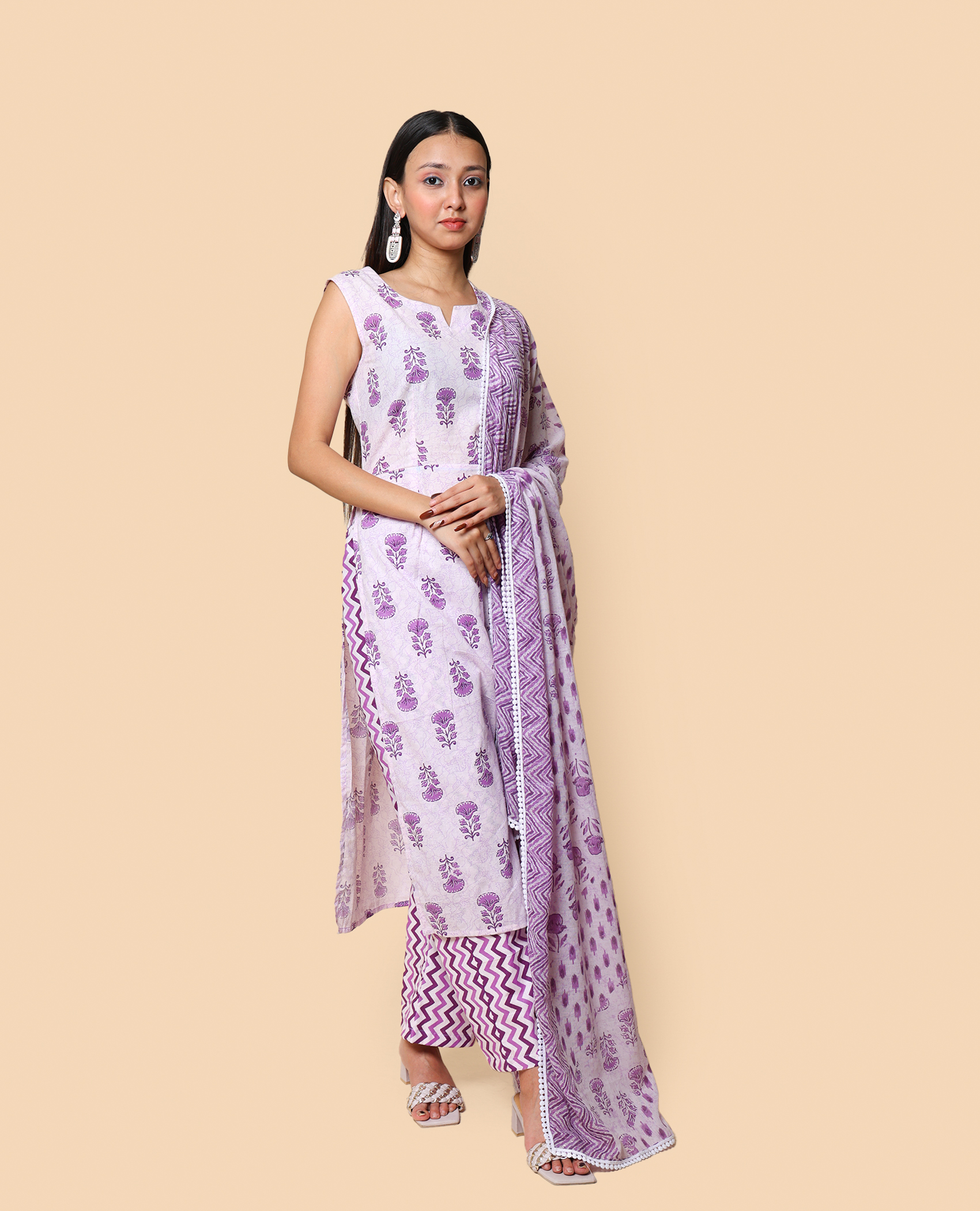 Stay effortlessly stylish in this cotton purple suit set designed for comfort and grace.